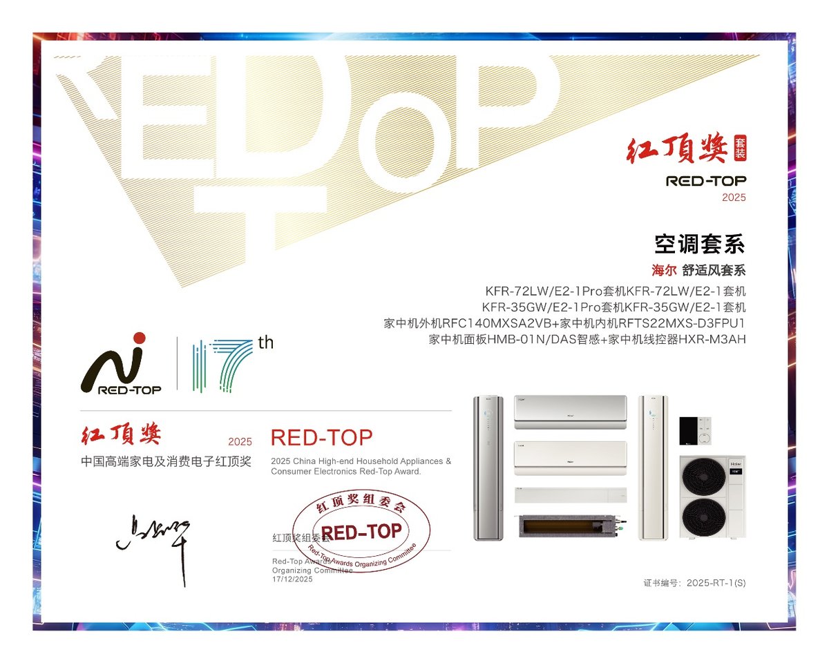 12月17日,家电行业权威奖项“红顶奖”揭晓。纵观本届获奖名单,一个现象值得关注:头部企业虽纷纷上榜,但大多仍凭借单项技术创新或明星单品获奖,聚焦于“更省电”、“冷热更快”、“更静音”等单一功能突破。唯独海尔空调是例外,成为行业内唯一凭借“全屋空气解决方案”、以“舒适风套系”获奖的企业。